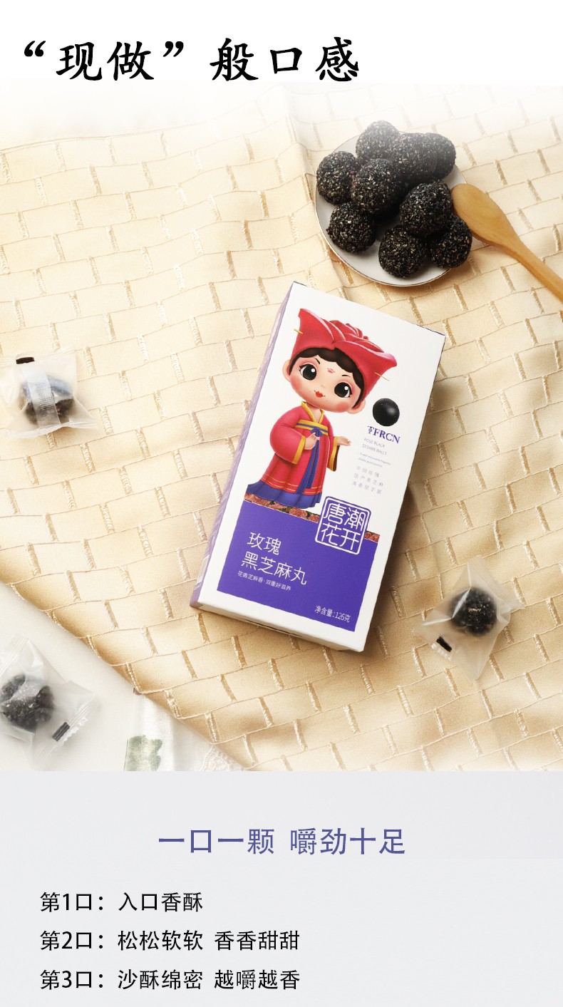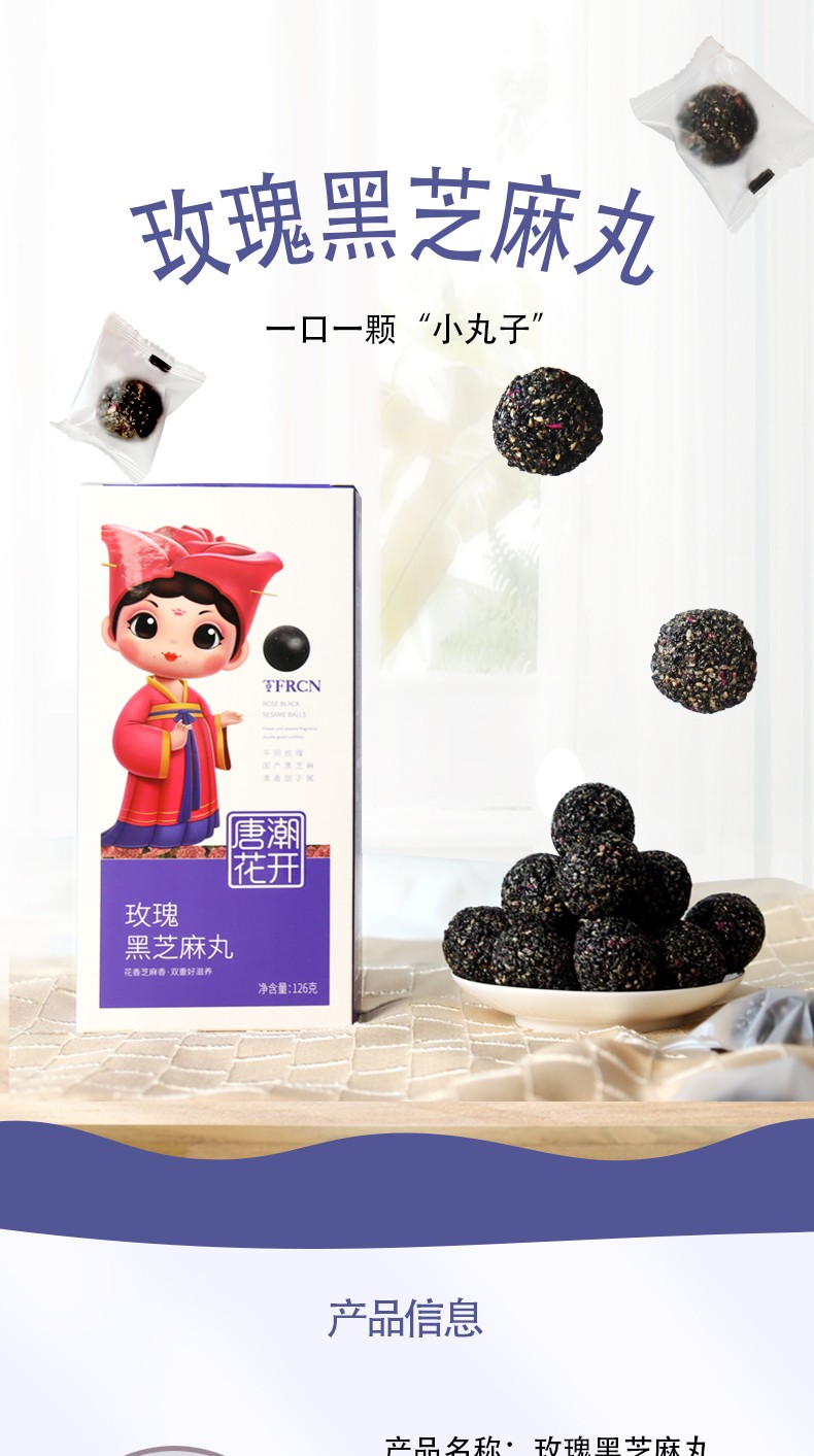 唐潮花開(kāi)平陰玫瑰黑芝麻丸 香甜不膩 盒裝126g