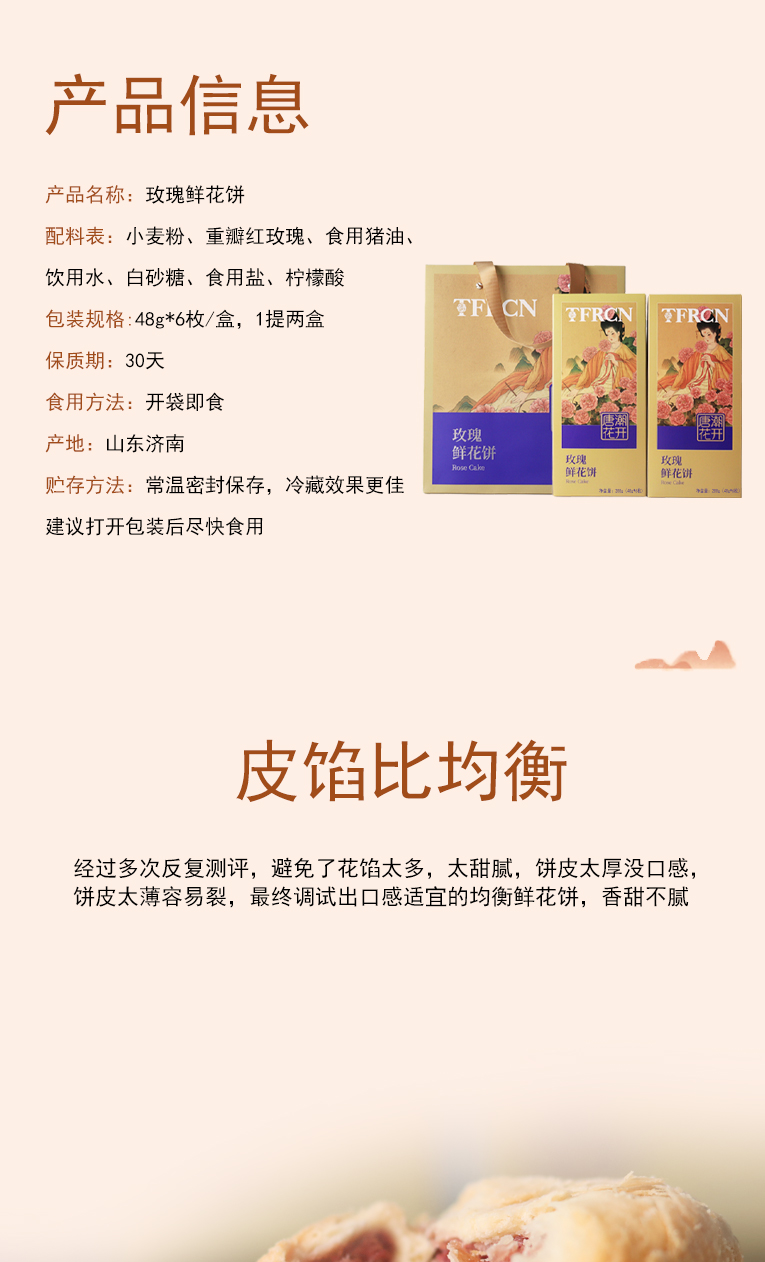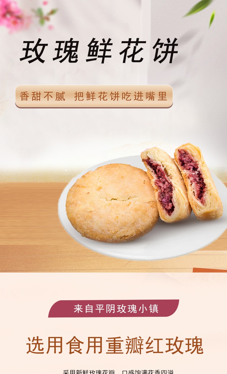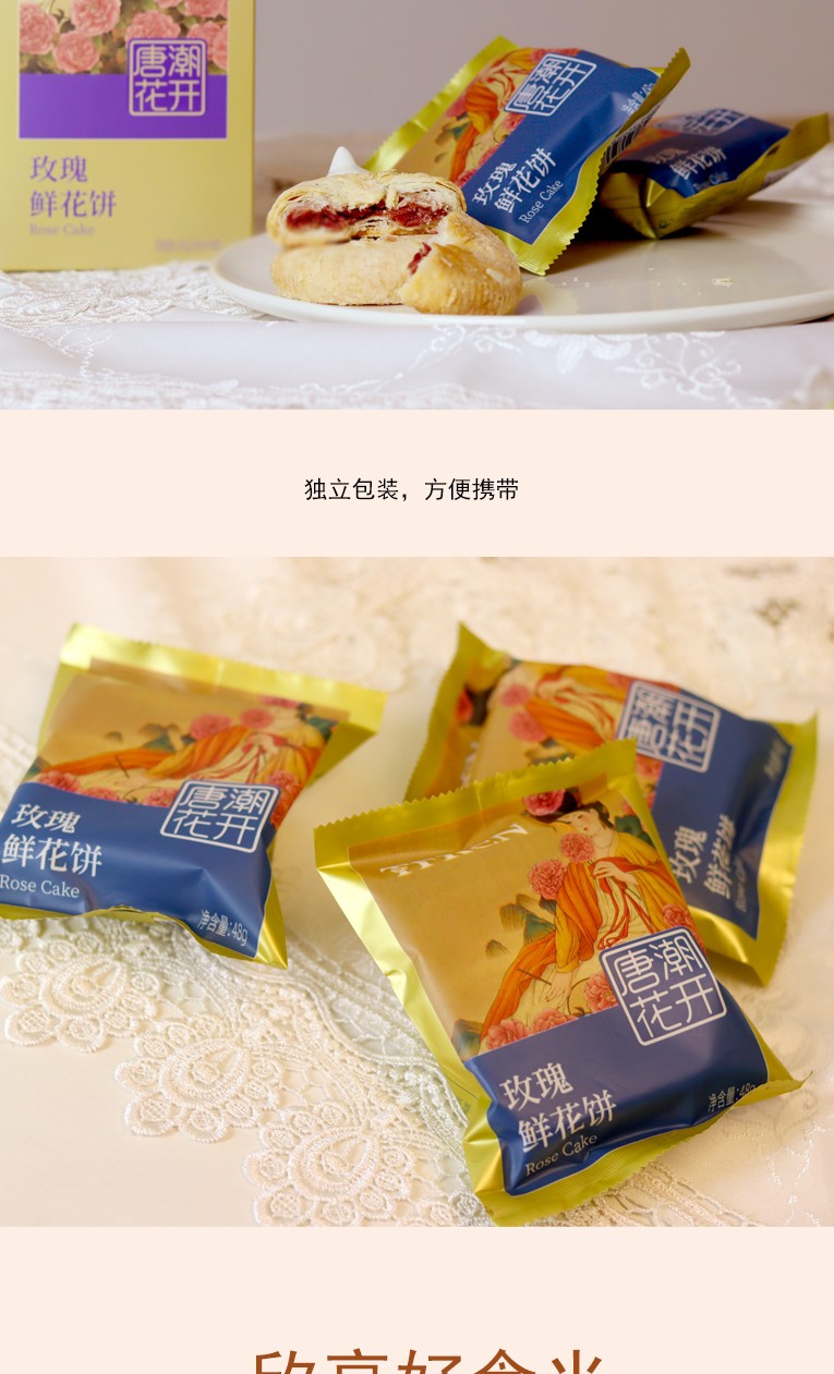 唐潮花開 平陰玫瑰鮮花餅 山東特產(chǎn)傳統(tǒng)香酥中式糕點(diǎn)禮盒