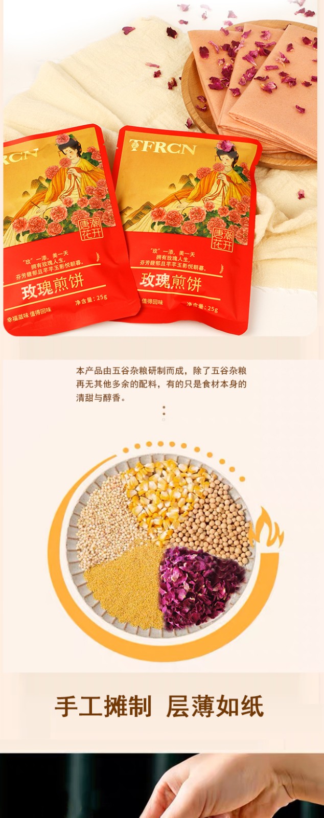 唐潮花開 平陰玫瑰 山東特產(chǎn) 玫瑰煎餅山東煎餅手工速食早餐即食