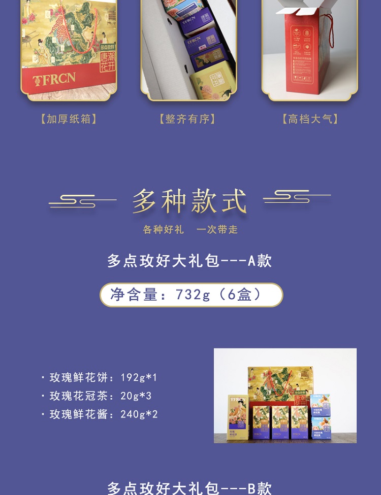 唐潮花開平陰重瓣紅玫瑰 多點(diǎn)玫好大禮包 玫瑰制品大禮盒