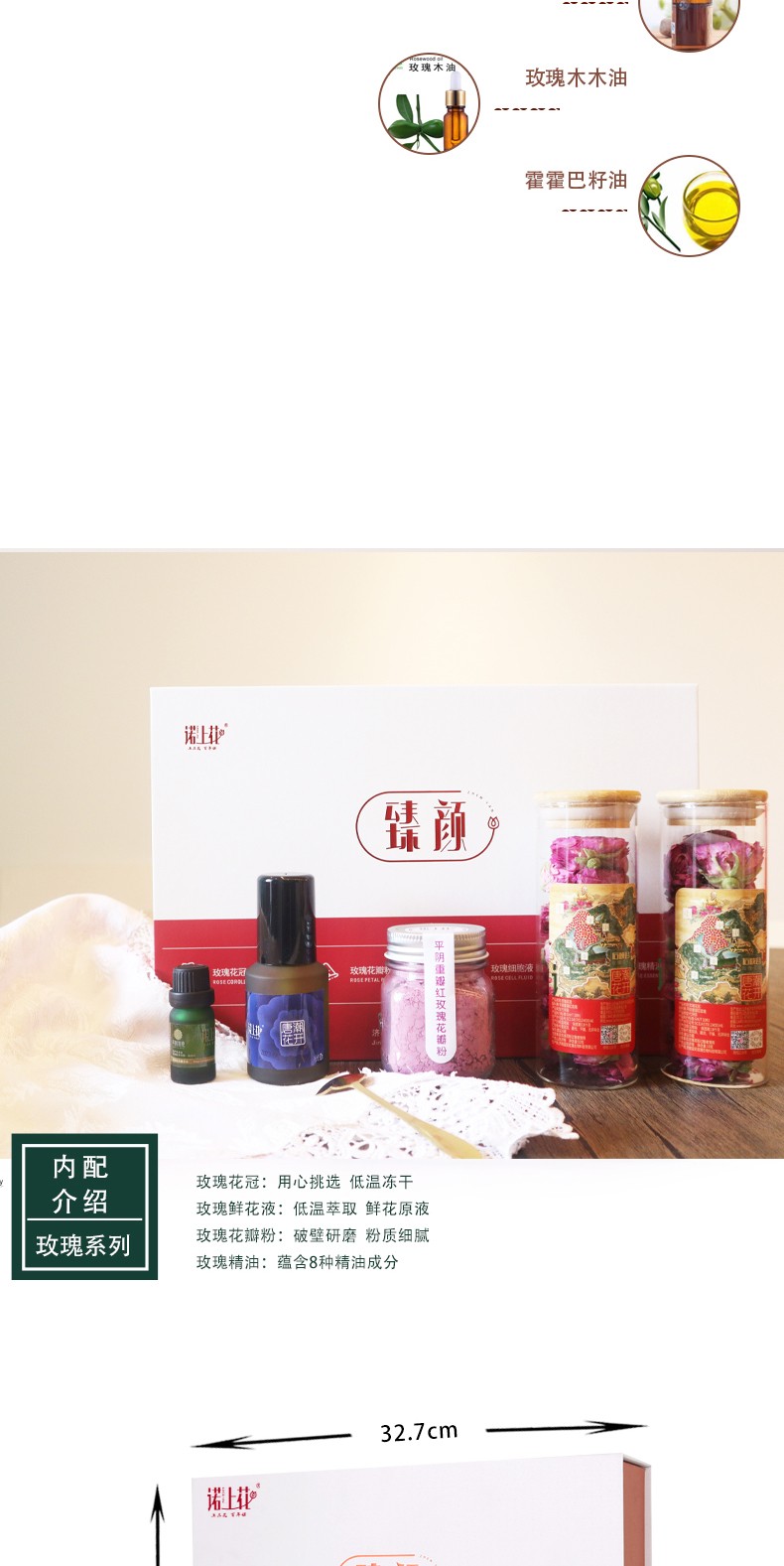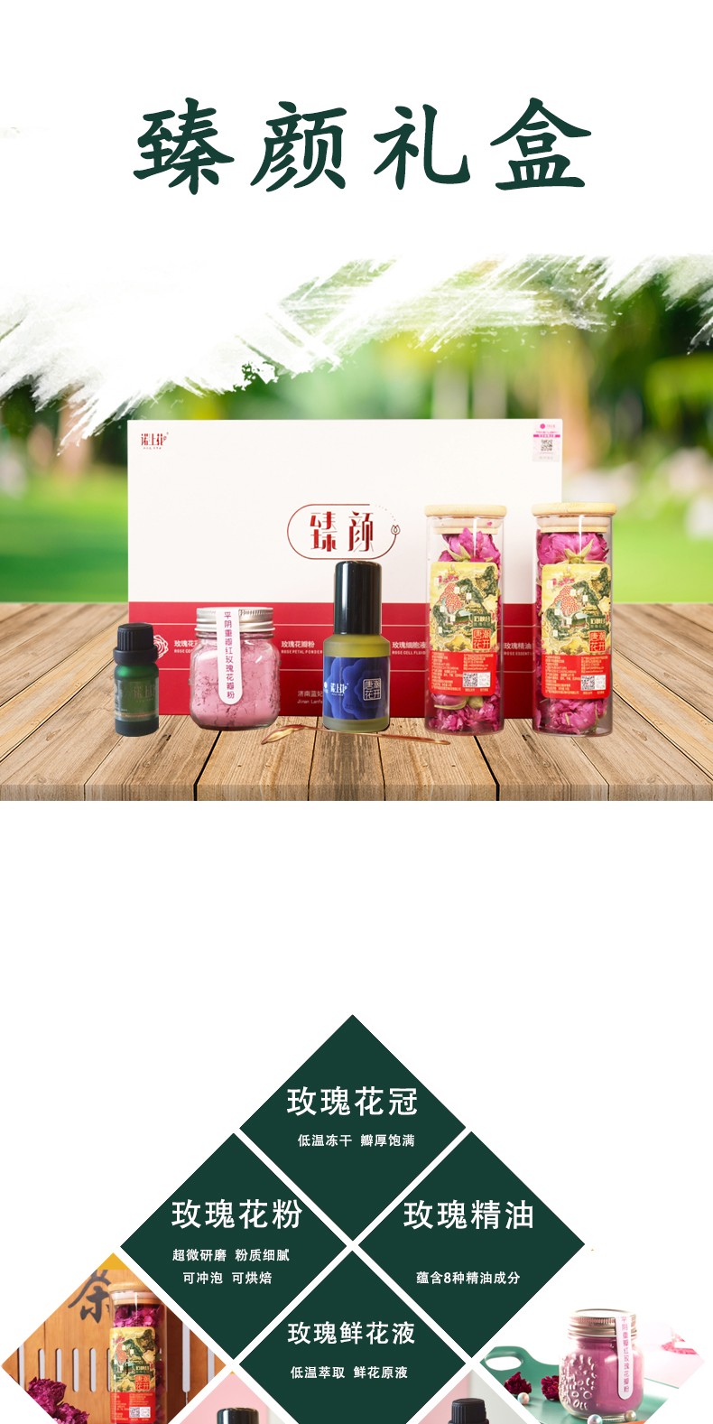 諾上花 平陰重瓣紅玫瑰臻顏禮盒 玫瑰精油 玫瑰鮮花液 玫瑰花粉 禮盒