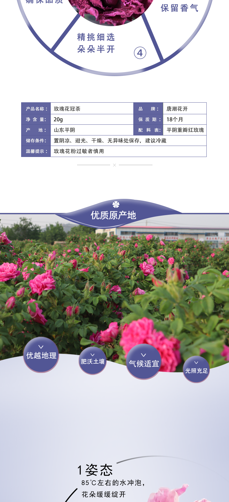 唐潮花開 平陰重瓣紅玫瑰凌晨采摘 低溫烘干 花冠茶20g